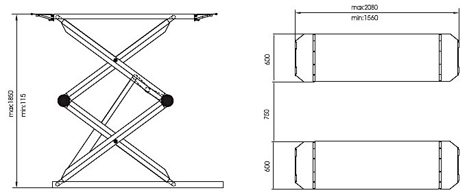 Четыре гидроцилиндра обеспечивают равномерный и плавный подъем. Платформы подстраиваются под любой автомобиль. Автоматические замки безопасности с пневматическим приводом. Автоматическая система безопасности для безопасной работы с подъемником.
