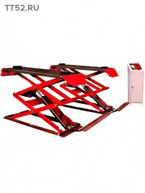 Напольный ножничный подъемник Atis S350F с четырьмя синхронизированными цилиндрами и удобными платформами под автомобиль.