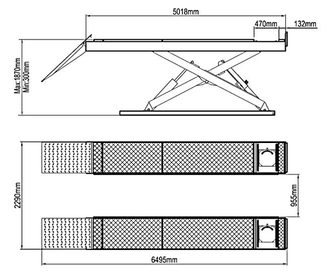 Ножничный подъемник Atis X550A для развал-схождения имеет высокую прочность конструкции, два синхронизированных цилиндра, регулируемые пластины и автоматическим устройством безопасности.